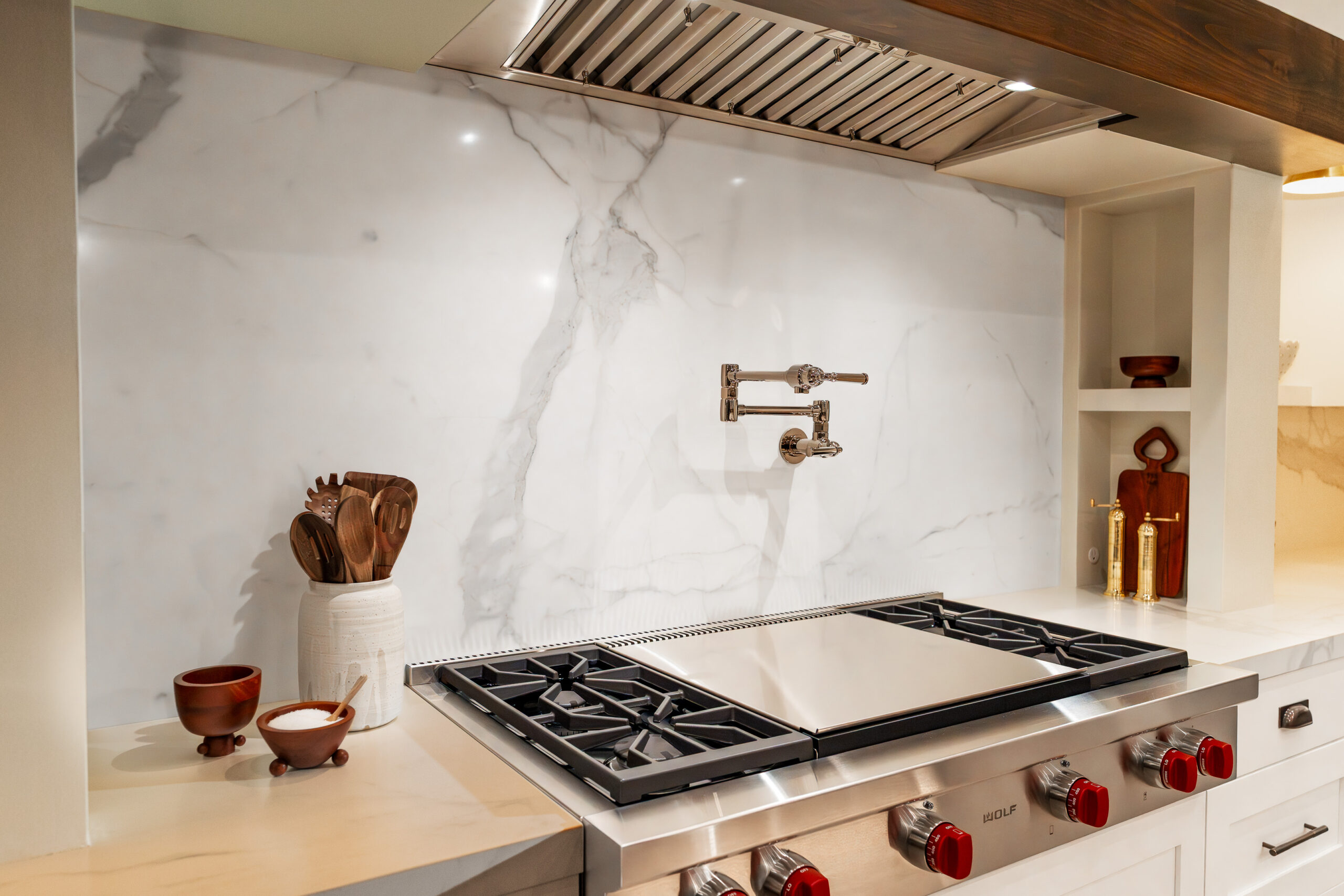 Our approach centers around large-format stone and porcelain slabs, chosen for their clean lines and minimal seams — the perfect solution for creating sleek, modern kitchens, baths, and showers that feel both spacious and sophisticated.